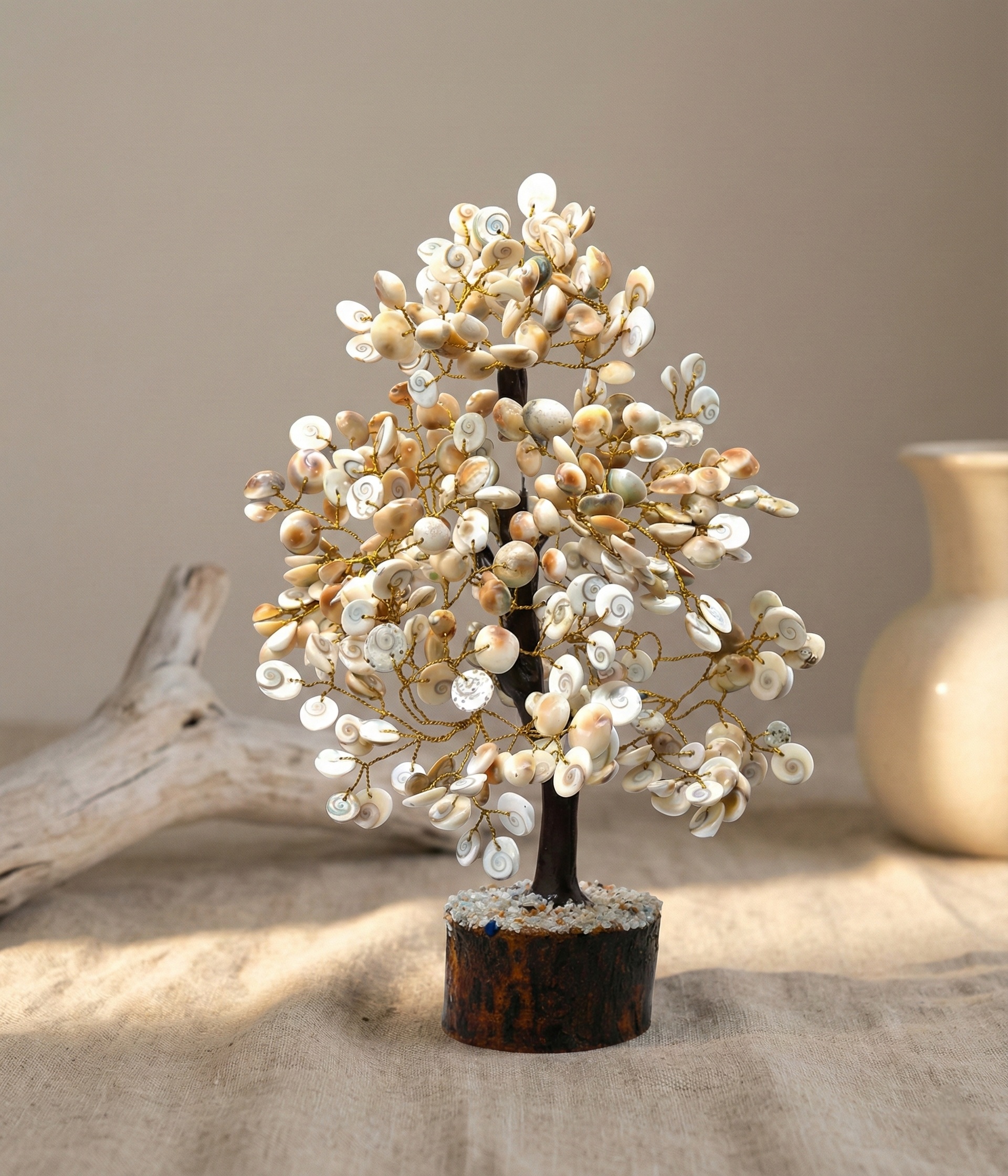 The Gomti Chakra tree is a beautiful and unique way to incorporate the healing properties of Gomti Chakra into your home or office. Each tree is handcrafted with real Gomti Chakra stones, which are believed to possess powerful energy that can help balance and harmonize your environment.
