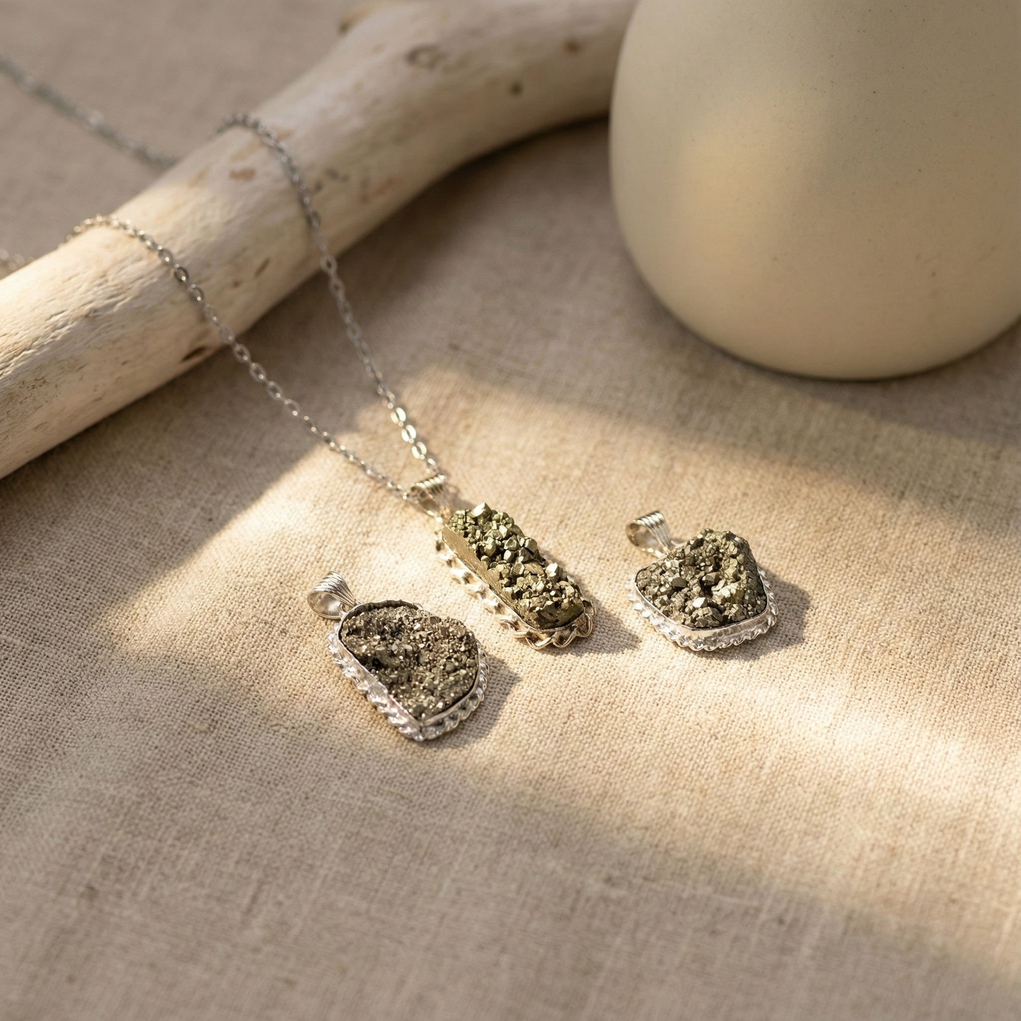 - Add lustre and luck to your life with the Cluster Pyrite Pendant.